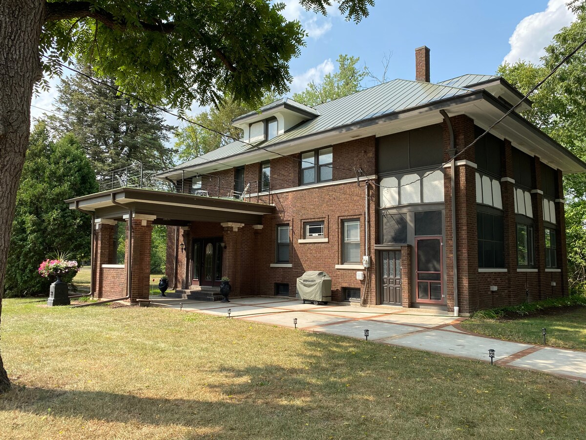 This house was built in 1916 and has recently been beautifully renovated. This property was once considered one of Rockford's Mansions because of its large accommodating 3 story size. Come enter the tranquility that this property provides from its riverside views to its endless entertainment possibilities. The moment you drive through the gates and down the tree lined driveway; you know that you have been transferred to a private retreat where you can relax from the city. Inquire for 10+ guests.
