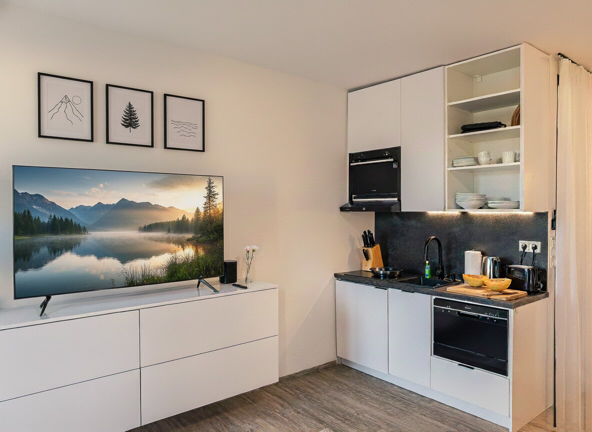 Welcome to dreamcation Apartments in Straubing Süd! Our design studio apartments have everything you need for a wonderful stay: → 45sqm in size → Queen-size beds (1.60x2.00m) → Fully equipped kitchenette → Terrace or balcony → NESPRESSO coffee machine → Smart TV → Washing machine → Own parking space (fee required) → High-speed WiFi → comfortable sofa bed for 2 additional guests