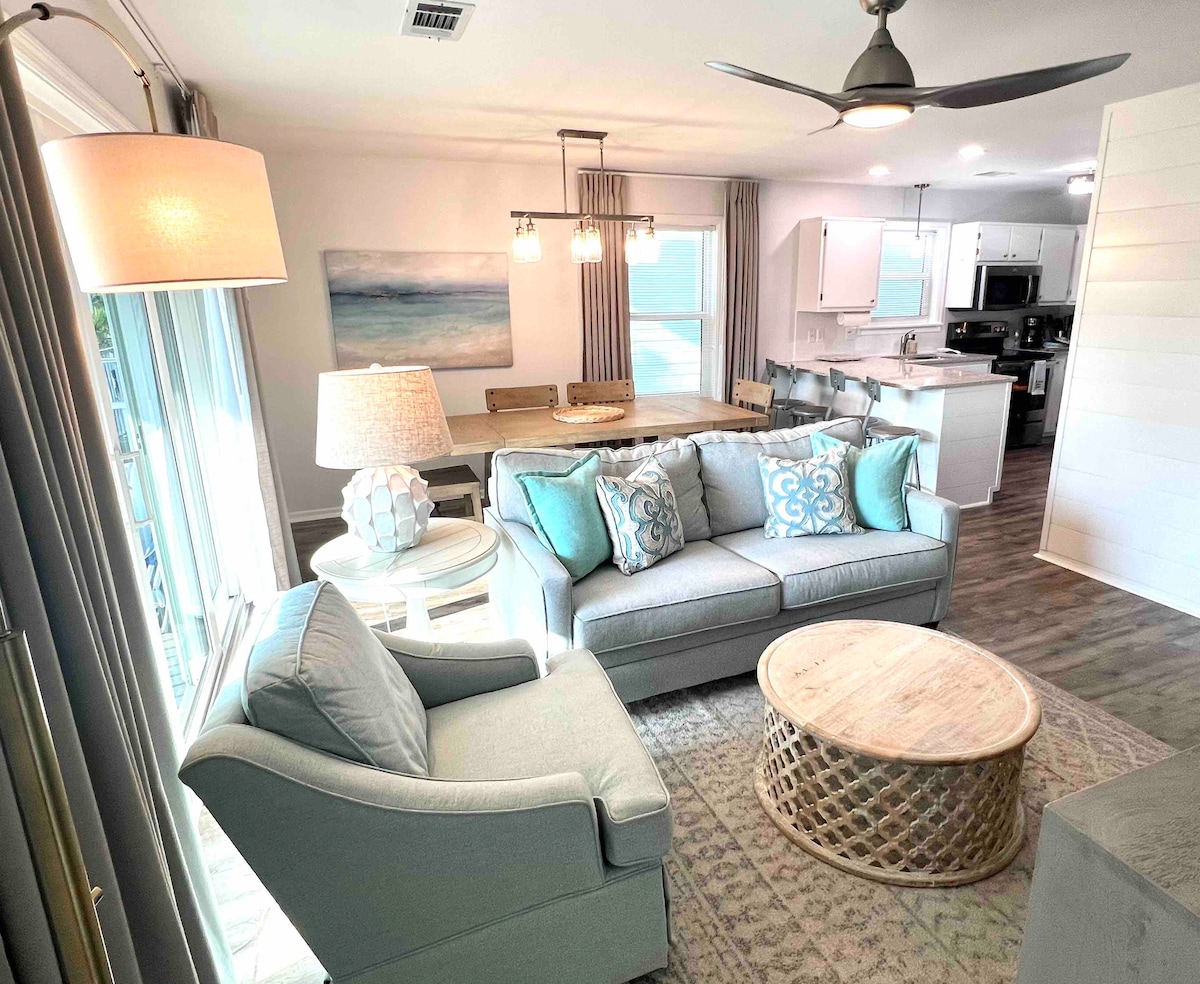 Vă rugăm să rețineți: balconul a adăugat recent grinzi suplimentare de sprijin din lemn, care pot obstrucționa ușor vederea la piscină și curte. 5 minute de mers pe jos până la plaja publică de pe Winston Lane~5 minute de mers pe jos până la Rosemary Circle~ Big Bad Breakfast Restaurant la fața locului~ Distanță de mers pe jos până la restaurante și cumpărături~ 4 scaune de plajă ~ 4 prosoape de plajă ~ 2 biciclete gratuite furnizate Bucură-te de tot luxul unei vacanțe în stațiune în confortul apartamentului tău privat 2 BR/ 2 BA. Această unitate superbă are vedere la