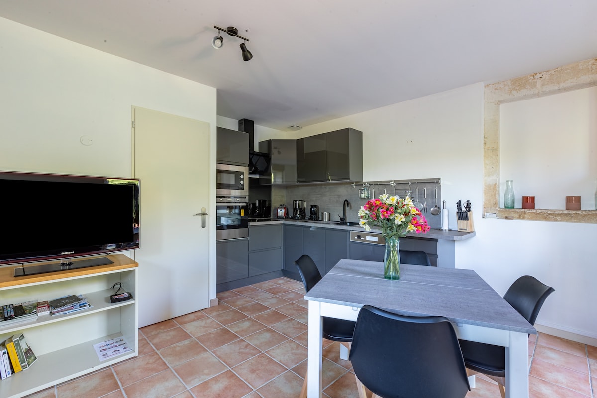 Pause charmante et bohème au cœur de Saintes ! Un air de vacances en plein coeur de ville, terrasse et glycine🌸 Posez vos valises dans cette longère lumineuse, pour un séjour paisible et convivial en famille ou entre amis.👝🎒 Son emplacement central vous permet de découvrir à pied les principaux trésors de la ville : les vestiges gallo- romains dont l’amphithéâtre, les bords de Charente, ses marchés et ses jolies ruelles. Envie d'une ballade à la plage, l’océan est à 45' en voiture. 🏄♂️
