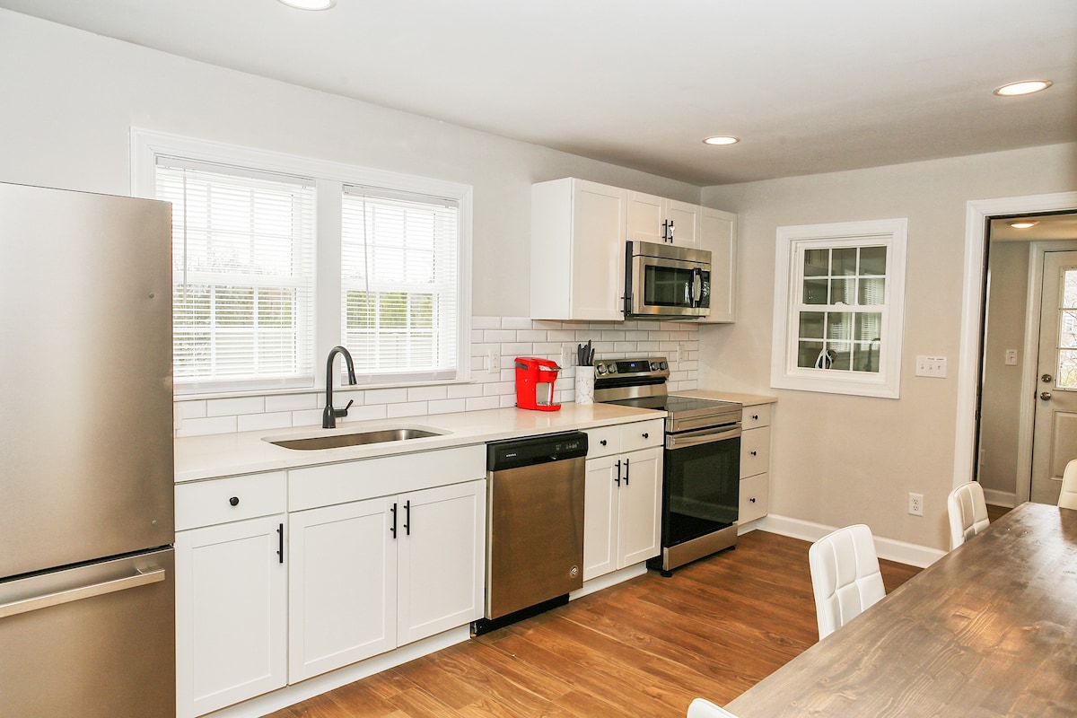 Bine ai venit la The Holly House! Această bijuterie complet renovată, cu 3 paturi și 1 baie, poate găzdui 5 oaspeți. Este adiacent restaurantelor, fabricilor de bere și magazinelor de vânzare cu amănuntul din centrul orașului și la doar o scurtă distanță de Whitewater Center, Belmont, Aeroportul Charlotte Douglas și alte atracții. Indiferent dacă te relaxezi în zona de living primitoare sau pregătești mese în bucătăria bine echipată, locuința noastră oferă un amestec perfect de relaxare și caracter practic. Farmec vintage cu confort modern!