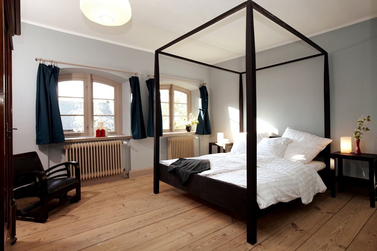 ✨ Historic manor house with sauna, fireplace, and 6,000 sqm garden ✨ ➝ Stylish apartment at Lexow Manor House ➝ Up to 8 guests—perfect for families and groups ➝ 4 bedrooms and 3.5 bathrooms ➝ Large living area with fireplace ➝ 6,000 sqm garden with fire pit ➝ Outdoor sauna for 6–8 people ➝ Barbecue facilities & seating areas in the garden ➝ Child-friendly with table tennis, trampoline & sandpit ➝ Dogs welcome ➝ Excellent WiFi throughout the house ➝ Electric charging stations