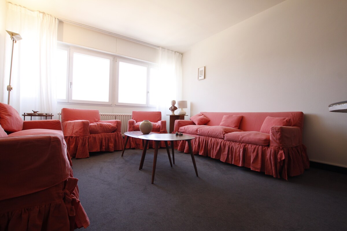 2 paturi, în centrul orașului, cu vedere uluitoare la lac, terasă mare pentru prânz și cină în aer liber. Gara este la 5 minute de mers pe jos. Complet cu parcare gratuită în garajul condominiului (mașină, fără furgonete!) Un dormitor dublu luminos, spațios, cu o terasă cu vedere la lac. Living mare cu vedere panoramică la întregul Golf Lugano. La străzile pietonale din lac și din centrul orașului se poate ajunge pe jos la 5 minute de mers pe jos prin Motta. NL-00002826