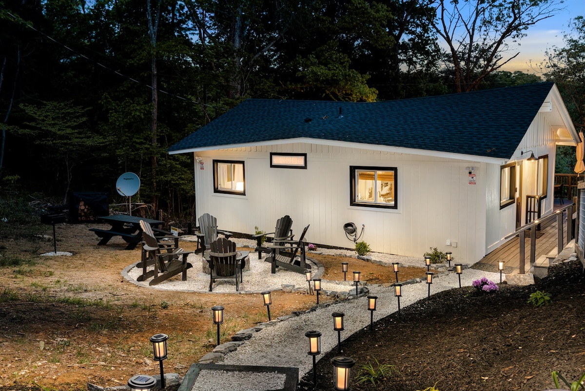 ✦ Situat convenabil, la câțiva pași de caiac și tubing de închiriat la Shenandoah River Outfitters. ✦ Bucură-te de griji în cada cu hidromasaj relaxantă, în timp ce ai vedere la pădure Spațiu de birou✦ privat dotat cu Wi-Fi rapid pentru apeluri Zoom neîntrerupte. Bucătărie modernă ✦ frumos proiectată, bine echipată, pentru mese gătite în casă. ✦ Conectează-te la serviciile de streaming pe Roku Smart TV de 55". ✦ Relaxează-te în aer liber cu grătarul exterior, vatra de foc și scaunele furnizate.