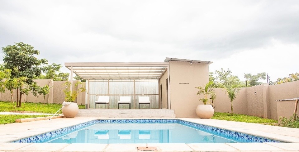 Casă centrală, dar liniștită, liniștită, spațioasă, cu grădini mature, luxuriante. Bucură-te de frumoasa piscină privată, relaxează-te în foișor, ascultă păsările și privește stelele noaptea lângă vatra de foc în serile răcoroase. Casa este dotată cu personal în timpul zilei, care te poate ajuta să gătești, să speli rufele și să te asiguri că ai un sejur confortabil, energie solară non-stop pentru toate dotările esențiale, Wi-Fi Starlink, sisteme de securitate de înaltă calitate și propriul foraj privat. Accesibil din Twin Palm sau Great East Road. Aproape de aeroport.