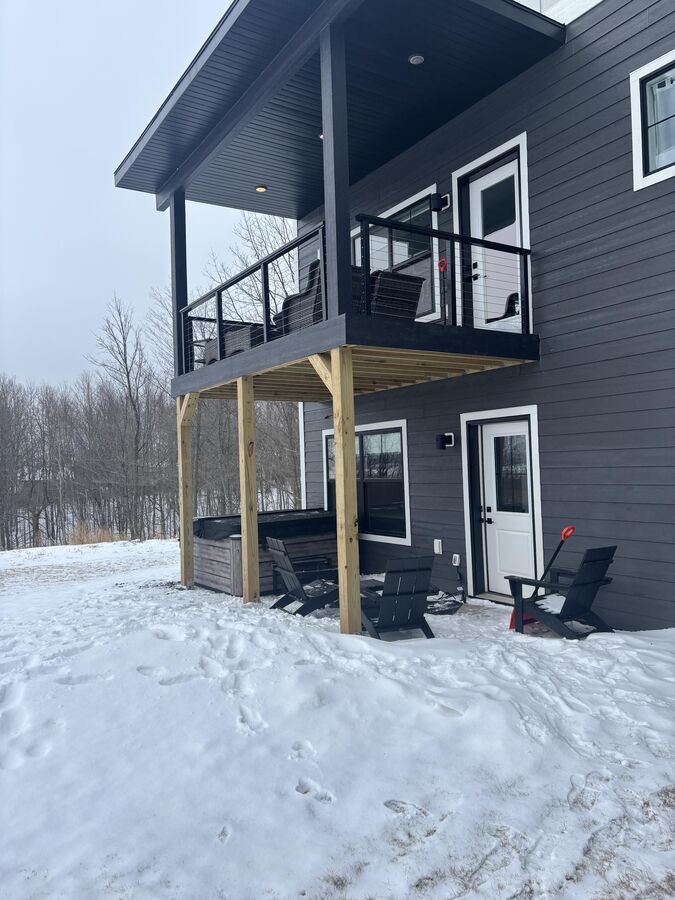 This unique building offers an enormous amount of outside space and privacy nestled in a wooded area. The huge yard gives plenty of outdoor space for kids and adults alike to enjoy the view. Optimal for 1-7 people, for a variety of uses from business travel, to the perfect family vacation with instant access to all of Duluth's attractions and events. Parties of 2+ have access to both floors, open concept. Parties of 1-2 the bottom studio provides a full apartment! We are next to Spirit Mt!