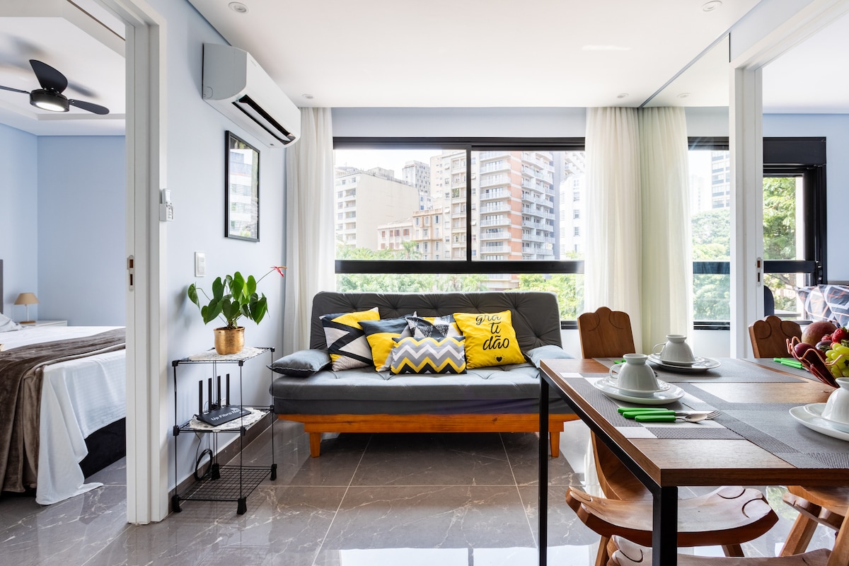 Cauți o experiență unică de găzduire în São Paulo, care oferă confort și siguranță în mijlocul forfotei centrului? Tocmai ai găsit! Situat în Largo do Arouche, cu o vedere frumoasă la Piața de Flori, apartamentul nostru „Flor do Arouche” oferă 2 dormitoare (1 apartament), living, bucătărie completă, baie și spălătorie. Aici vei primi 2 SmartTV, Wi-Fi ultra-veloz, aer condiționat central, pat matrimonial și spațiu de birou de acasă. Consiliul local finalizează experiența: concierge non-stop, piscină și centru de fitness. Consultă locuința noastră: