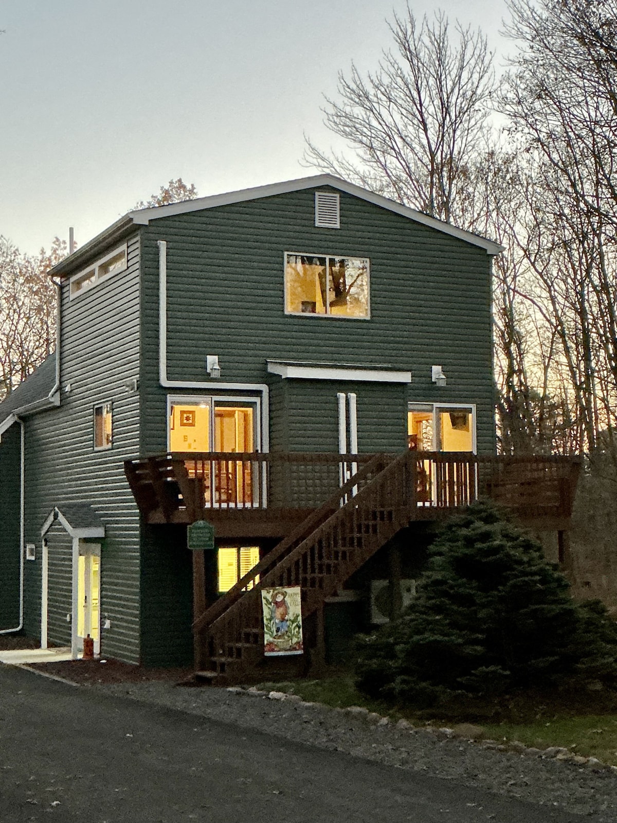 Situat în comunitatea Bear Creek Lake, cu facilități precum lac cu port de agrement și plaje, piscină, terenuri de tenis și baschet etc. Casa are două punți, bar, șemineu interior, grătar exterior și vatră, loc de joacă privat, home theater cu sistem surround și garaj atașat pentru două mașini. Închirierea include caiace, biciclete, masă de ping pong, echipament sportiv și băuturi calde nelimitate. Aproape de mai multe stațiuni de schi, parcuri de stat PA și la câțiva pași de rafting și Paintball Pocono Whitewater. Jim Thorpe