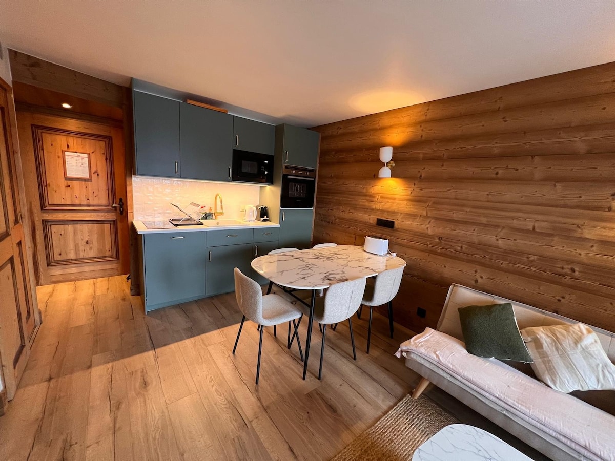 Acest apartament magnific, complet renovat pentru 2 până la 4 persoane într-un spirit de cabană prestigios, schiuri pe jos, situat în reședința Le Hameau du Glacier de 5*, oferă servicii rare și unice în sat. Vei avea acces gratuit la toate facilitățile reședinței (fitness, hamam, saună, piscină încălzită în aer liber și jacuzzi) și vei avea acces direct la facilitățile reședinței Prince des Cimes, inclusiv singura piscină încălzită interioară a satului.