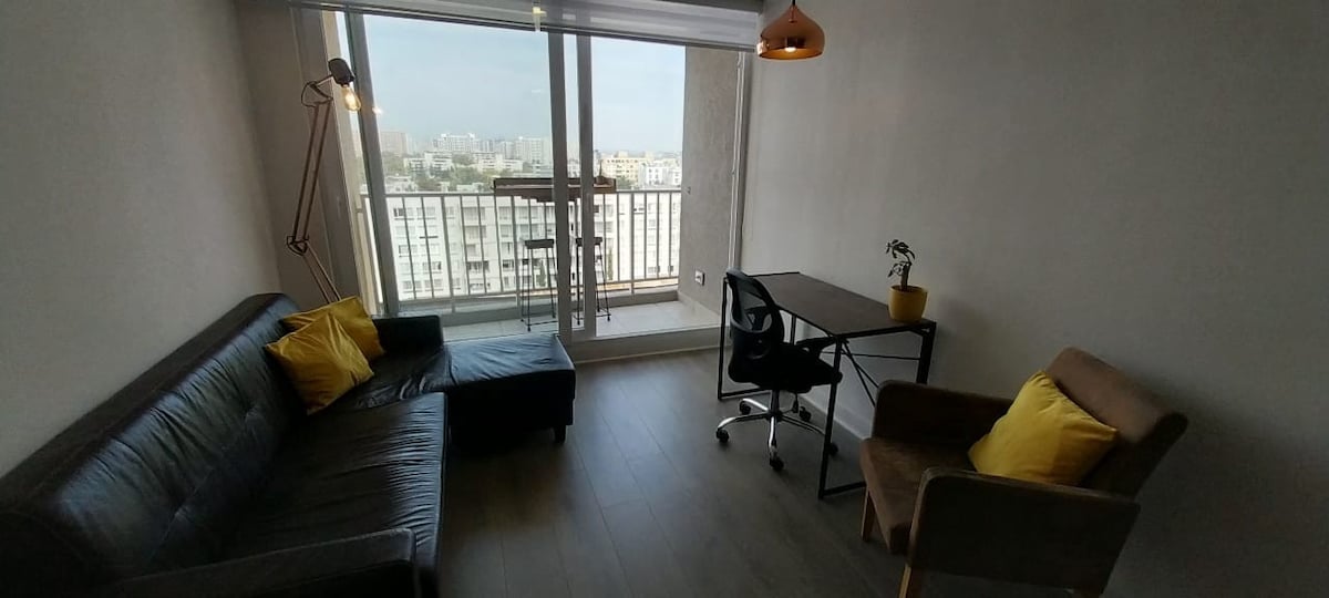 Welcome! • Enjoy easy access to much of Santiago via nearby main avenues. • Rest comfortably on a bed designed for your relaxation. • Parking is included, and you can ask us if you need an extra spot. • Just minutes from Estadio Nacional (Line 6) and Ñuble (Line 5) metro stations. • Close to shopping centers and supermarkets. • Fully equipped kitchen to cook whatever you’re in the mood for. • Security cameras in the building for your peace of mind. • Modern 34m² apartment.