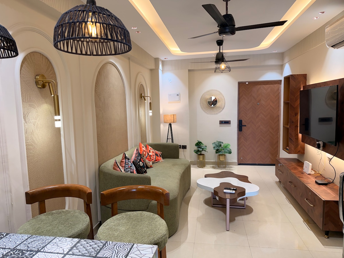 Confortabil, minim 2BHK într-o societate închisă, cu propria piață și un magazin de băuturi în apropiere. O cameră are o baie atașată. Bucură-te de WiFi, TV, aer condiționat, uscător de păr și o bucătărie complet mobilată. Zomato și Blinkit livrează chiar la ușă. Check-in independent ușor cu un cod PIN securizat. Un spațiu confortabil, calm, perfect pentru muncă sau o escapadă relaxantă. 🌿💛