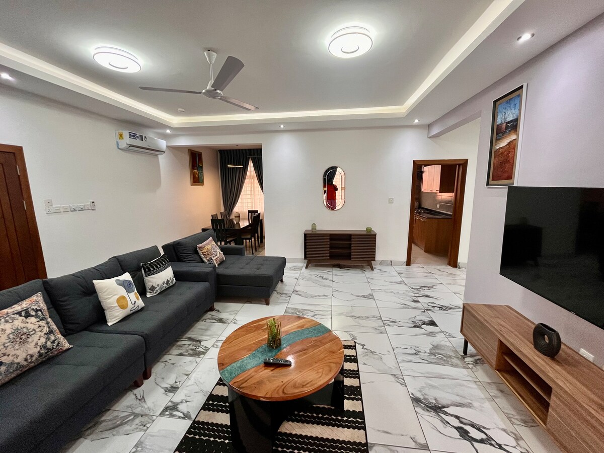 The Serene Haven — locul tău de odihnă în Accra La doar cinci minute după aterizarea pe aeroportul Kotoka, pășești într-un spațiu în care orașul încetinește și confortul preia controlul. Retragerea noastră spațioasă cu 2 dormitoare din Airport Residential îmbină designul modern cu o atmosferă liniștită și revigorantă. Trezește-te în lumină blândă, relaxează-te în spații generoase și bucură-te de cele mai prestigioase cartiere din Accra chiar la ușa ta. Pentru afaceri, romantism sau o ședere lungă, Serene Haven devine capitolul liniștit al poveștii tale din Accra