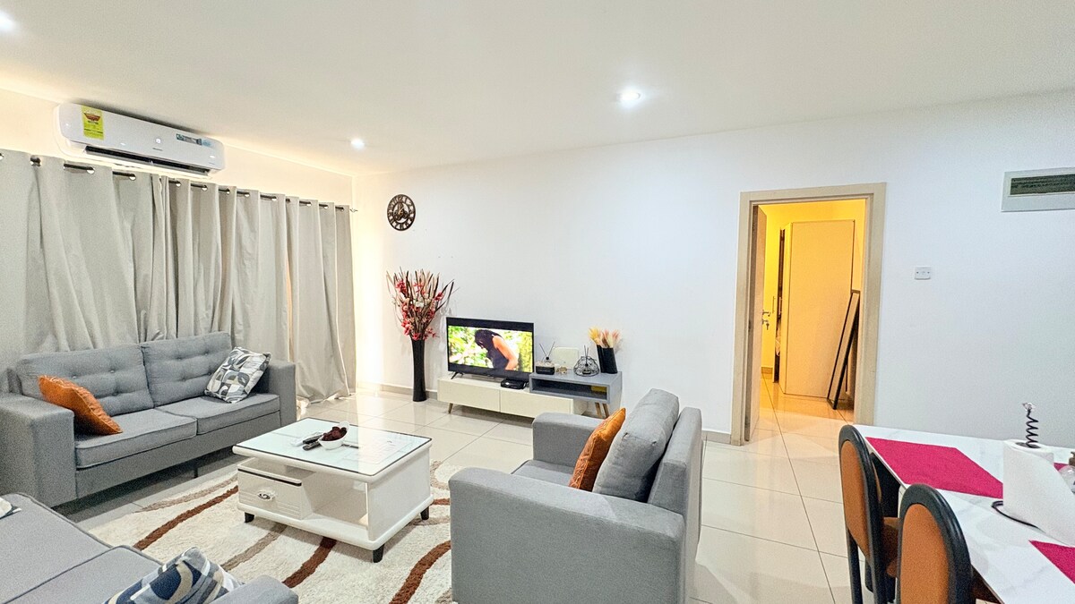 The Serene Haven — locul tău de odihnă în Accra La doar cinci minute după aterizarea pe aeroportul Kotoka, pășești într-un spațiu în care orașul încetinește și confortul preia controlul. Retragerea noastră spațioasă cu 2 dormitoare din Airport Residential îmbină designul modern cu o atmosferă liniștită și revigorantă. Trezește-te în lumină blândă, relaxează-te în spații generoase și bucură-te de cele mai prestigioase cartiere din Accra chiar la ușa ta. Pentru afaceri, romantism sau o ședere lungă, Serene Haven devine capitolul liniștit al poveștii tale din Accra