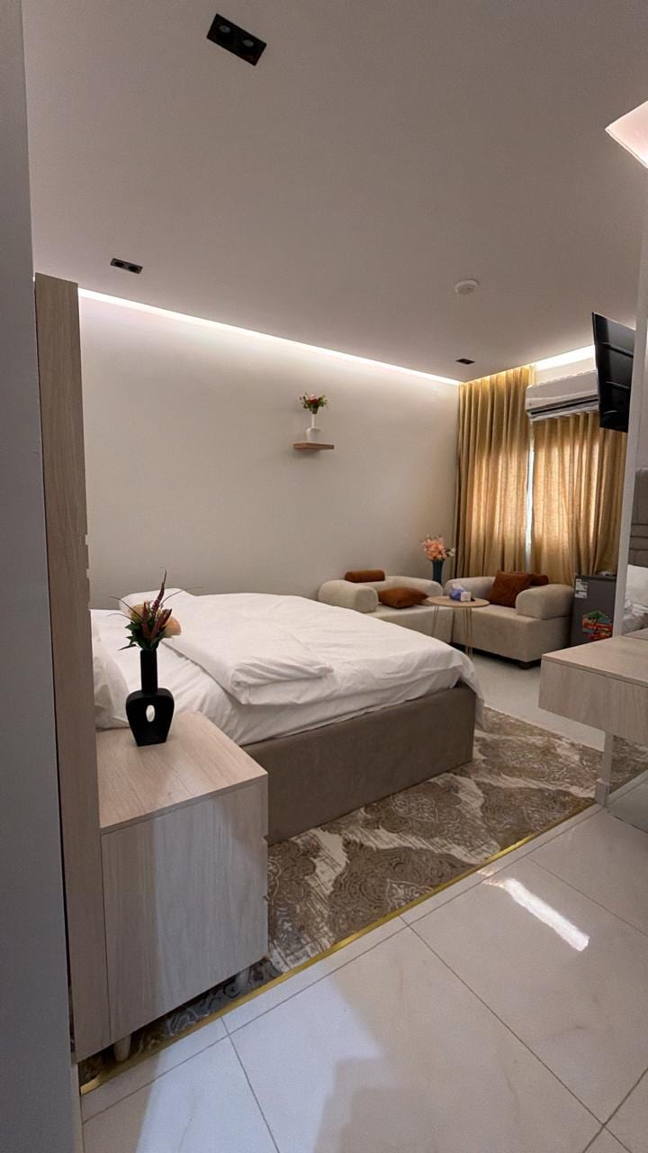 Studio complet echipat recomandat Poziție : Zonă cu centură Aproape de toate serviciile și evenimentele - Trenul Haramain: 7 minute - Haram al-Nabawi: 8 minute - Aeroport : 15 minute - Moscheea Quba: 10 minute Constă din : Dormitor + baie Servicii - Conectare inteligentă - Frigider - TV de 60 inchi Netflix + Watch + Youtube - Parcare interioară Spațiul : Acest studio modern oferă elemente de design de înaltă calitate, oaspeții se pot relaxa la salariul său luxos și se pot bucura de un televizor de 60 inch, vei găsi o baie complet echipată.