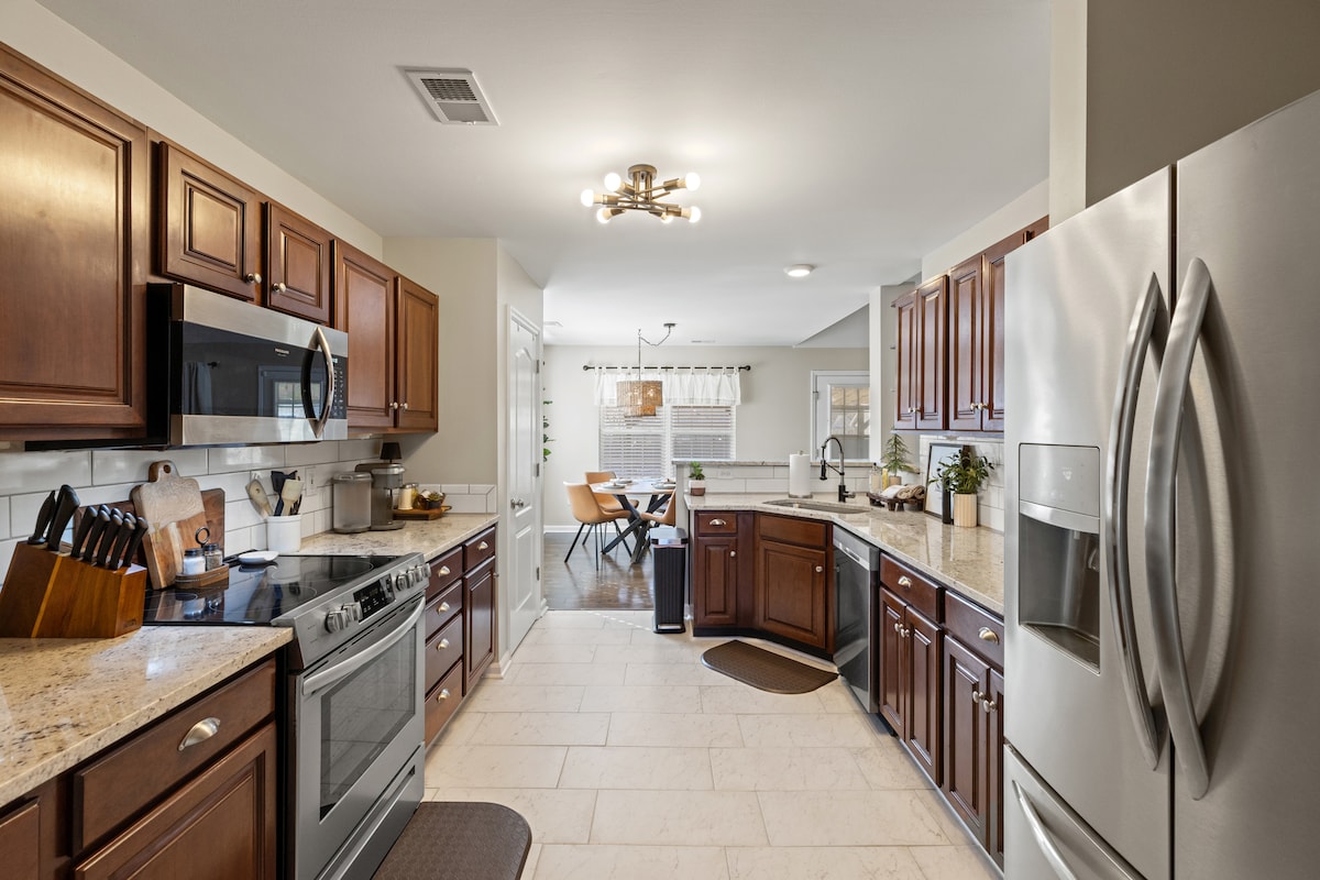 Cazează-te în această casă recent renovată, proaspăt mobilată, cu 3 dormitoare și 3,5 băi, din inima orașului Richmond, KY. Această locuință are multe caracteristici de lux, cum ar fi o cameră de zi, blaturi de granit și se află la câțiva pași de campusul Universității Eastern Kentucky. Este inclus un Smart TV în living, televizoare în 2/3 dormitoare, aer condiționat/căldură reglabilă, saltele Serta și mobilier de lux perfect pentru relaxare. Apreciem că stai la noi și nu ezita să ne contactezi în orice moment în timpul șederii tale!