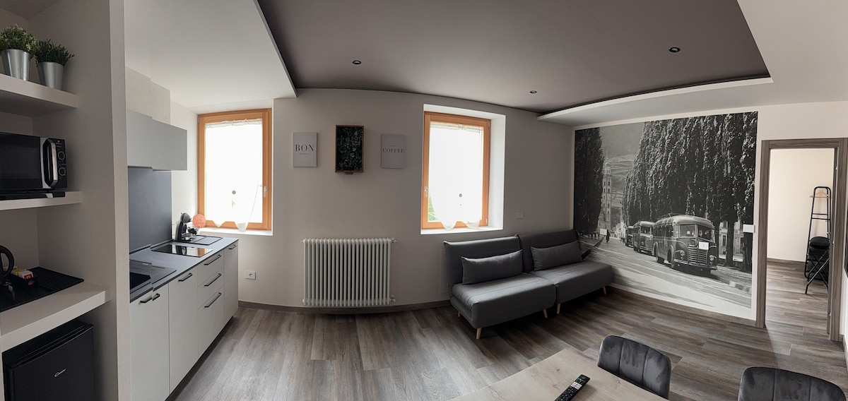 Construită cu pietre netezite de râul Poschiavino, Stone este un refugiu autentic unde natura și confortul se întâlnesc. Pereți care șoptesc povești, apartament cu două camere, o bucătărie confortabilă, o zonă de relaxare cu două fotolii care se transformă în paturi și un dormitor dublu liniștit. De la fereastră, trenul roșu și Sanctuarul Tirano încadrează un peisaj de vis. O invitație de a încetini, de a respira și de a fi încântat.