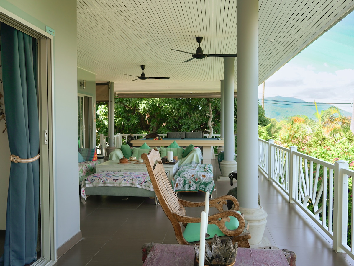 💙 Welcome to our Boutique sea view home - Charming & well loved with all the modern comforts you could ask for. 🏝️ 3 min ride to beach with the best Seaview of the island, it offers you privacy as there is no other house around and it's close to the city center with easy access to all the best restaurants and beaches like fisherman village. 💙 The sea view and the sunset are at your doors in one of the most loved island of Thailand