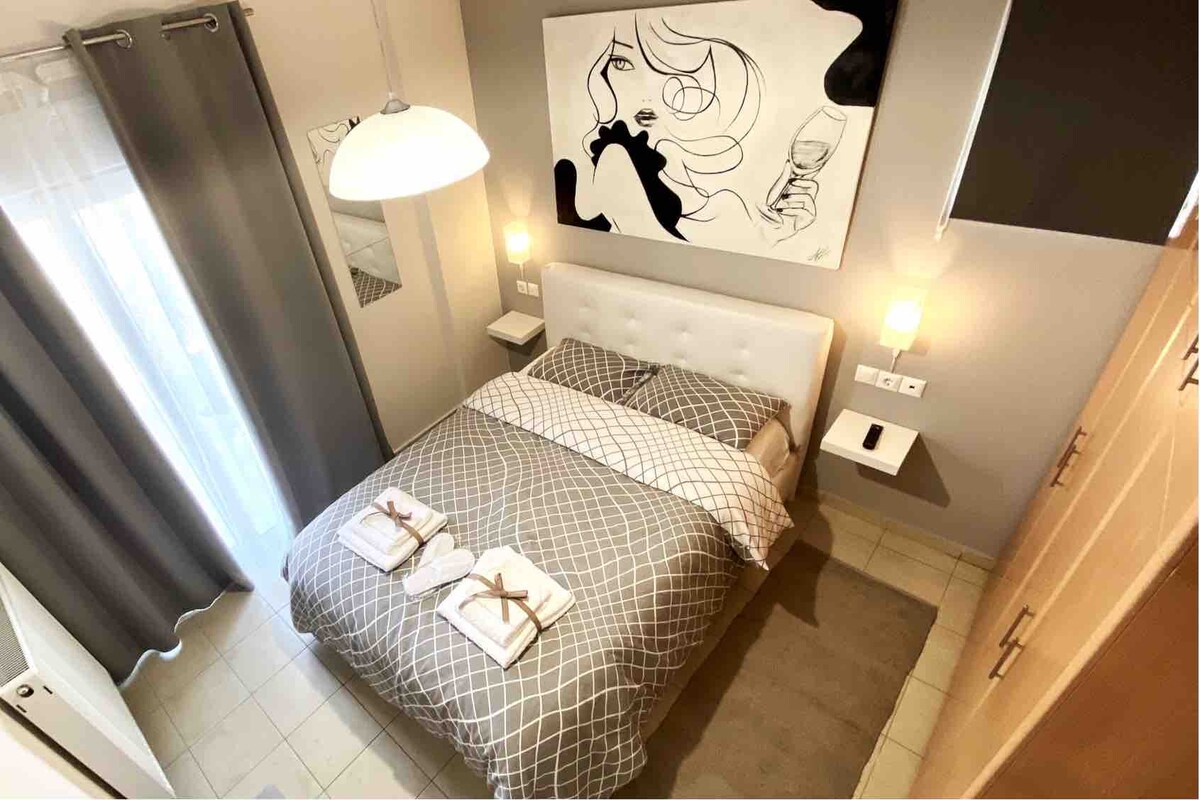 Situat în centrul orașului Volos, la 4 minute de mers pe jos de magnificul port. Format din 1 dormitor, living cu 2 canapele extensibile, baie și bucătărie, toate strălucitor de curate. Cu 32'' smartTV-NETFLIX. Ideal pentru a găzdui 5 membri - familii, călători, cupluriși oaspeți de afaceri .În apropiere de o brutărie și de celebrul drum Koumoundourou,înconjurat de magazine,cafenele și restaurante. Puteți găsi cea mai recentă modă la îndemână .Energetic în timpul zilei, dar relaxant în timpul nopții! Ospitalitate de 5 stele!