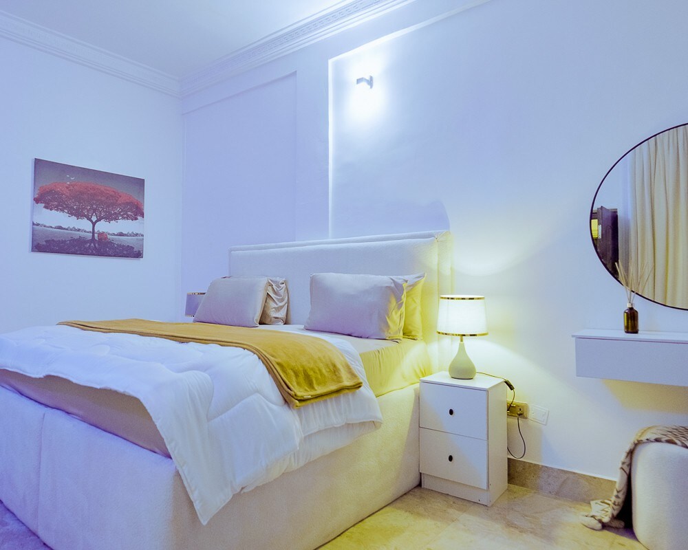 Experimentează luxul în acest apartament spațios și elegant, cu 2 dormitoare, cu piscină, sală de gimnastică, Wi-Fi Starlink, PS5 și interioare frumos amenajate. Clădirea oferă alimentare cu energie electrică non-stop și o bucătărie la fața locului, unde poți comanda mese proaspăt preparate, livrate chiar la ușa ta. Perfect pentru cupluri, familii, persoane care călătoresc în interes de afaceri sau excursii de grup cu prietenii care caută confort și rafinament în inima Lekki Phase 1.
