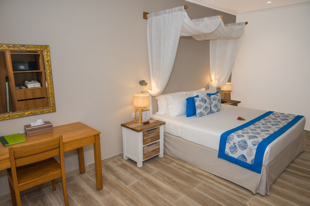 Lovely spacious one bedroom apartment, in an ideal beachfront location on Mahe Island's scenic north-east coast. Our one bedroom apartment boasts a master bedroom with ensuite bathroom with shower, open plan fully fitted kitchen, living room and eye-catching terrace that opens out onto a large tropical garden that is part of the complex. Your apartment overlooks the ocean. Key features include direct beach access, private terrace, complimentary wifi, in-room safe, shared pool to name a few.