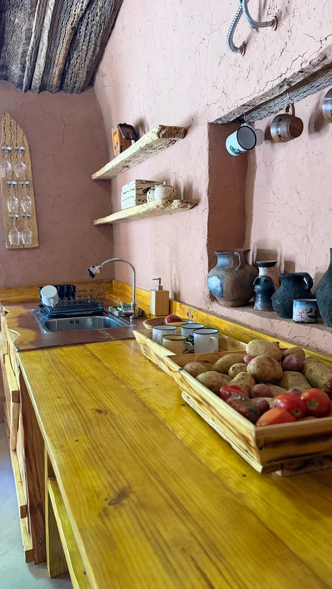 Fermă pentru 2 persoane într-o proprietate de 4000 de metri pătrați, cu o vedere incredibilă la munții Paleta del Pintor, în mijlocul unui câmp de culturi și un țarc de lame, construit în stil andin, cu materiale locale, cum ar fi chirpici, trestie și piatră, încălzire solară și utilizarea eficientă a apei.