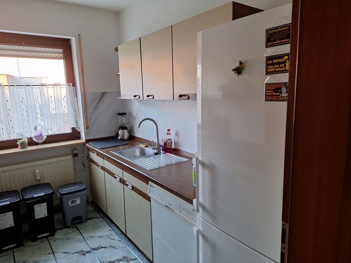 La numai 5 km de Aschaffenburg, la poalele munților Spessart, ofer un apartament modern și însorit de 2,5 camere, cu intrare proprie. Are soare de dimineață pe terasa de pe acoperiș, cu o vedere îndepărtată și un balcon. Pat de 1,60 m, cadă, TV, WiFi și chicinetă. Și aici locuiesc două pisici prietenoase. 15 minute până la A3 și A45, dar chiar în natură pentru a te relaxa. Poți ajunge la un magazin și un restaurant non-stop la câțiva pași și la 5 minute de mers pe jos de autobuzul spre Aschaffenburg HBF. Aștept cu nerăbdare vizita ta!