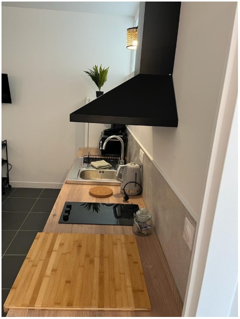 Vino să-ți reîncarci bateriile în acest apartament frumos de 50 m², conceput ca un spațiu complet deschis, cu baia care dă în camera principală. Dacă dorești, savurează un pahar de șampanie într-o CADĂ CU HIDROMASAJ și adoarme sub un cer înstelat. De asemenea, bucură-te de terasă pentru o mică respirație seara sau pentru a lua micul dejun cu fața spre natură. Totul pentru a ne reuni ca un cuplu sau solo pentru o seară liniștită. Nu ezita să ne contactezi pentru orice solicitări.