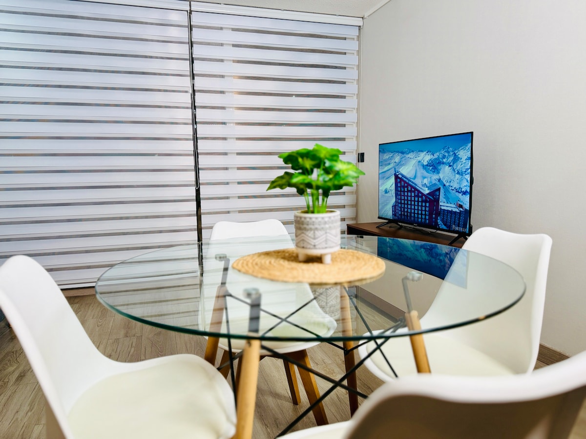 Enjoy Santiago in this comfortable apartment for up to 5 guests, just 200 meters from La Cisterna Metro and with private parking included. Ideal for families or groups. It features 2 bedrooms, a sofa bed, a fully equipped kitchen, fast WiFi, Roku TV, air conditioning, and a washing machine. Strategically located near a mall, supermarkets, and restaurants. Secure building with 24/7 concierge. Highly rated by guests for its location, comfort, and cleanliness.