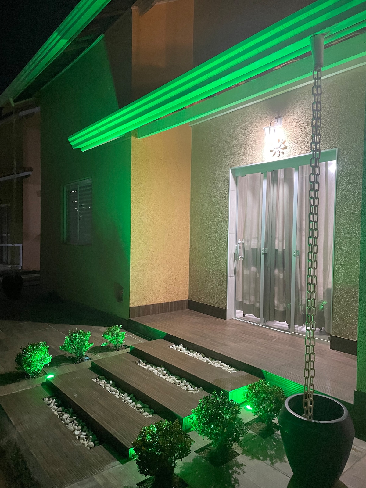 3 quartos 3 banheiros (2 internos na casa + 1 externo área da churrasqueira e piscina) 1 sala com TV 1 cozinha (geladeiras, fogão, mesa, armário e utensílios domésticos, Forno de Micro ondas e cafeteira Doce Gusto) Area gourmet: Churrasqueira, forno e fogão a lenha com 2 pias e TV Smart Cervejeira / Freezer Lazer: Campo de futebol Parquinho Piscina 8 x 4 (com cascata, hidromassagem e iluminação de LED colorido) Prainha infantil 4,5 x 1,5 Mesa de Pebolim Wi-fi Livre - FIBRA OTICA 120MB