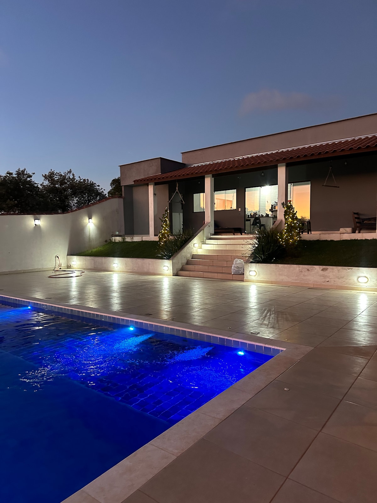 Casă fermecătoare, confortabilă, privată, într-o comunitate închisă din mediul rural, sigură, liniștită, acceptă animale de companie, la 64 km de SP - Wi-Fi, 1.600 m² de zonă cu gazon mare, piscină privată cu adâncime de 1,3 m și plasă de siguranță. Living, sufragerie, șemineu, bucătărie americană cu cămară, 4 apartamente și lavabo. Balcon cu grătar, cuptor de pizza, hamac. Spațiu pentru mai multe mașini. Souza Lima Security, pompier și servicii de urgență. Zi foarte însorită și rece noaptea. Tensiune: 110V