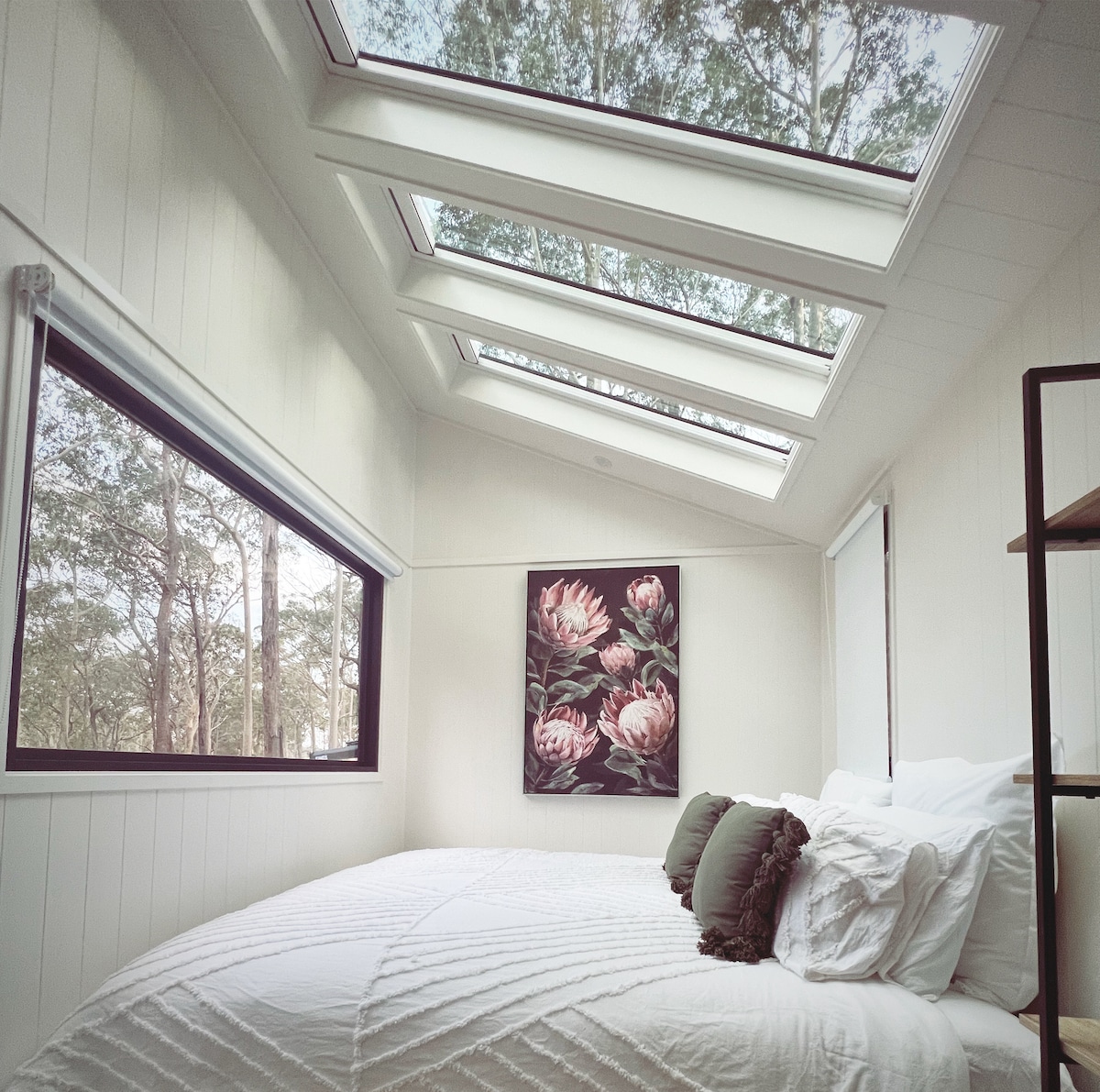 Bucură-te de un refugiu de artă, scris sau yoga, lucrează de acasă sau o nuntă. Proprietate aprobată de National Trust, foarte privată, cu priveliști rurale impresionante, la 10 minute de mers pe jos de cafenele și galerii de patrimoniu. Acces facil. Fără pași. Lenjerie de pat franceză din in, podea încălzită în baie, foc de lemne🔥, covorașe de yoga, șosete merino, Wi-Fi, o mică bibliotecă 📚 Queen și canapea extensibilă. Pâine proaspătă pentru cafenea, ouă, brânză, fructe și cămară furnizate, espresso De Longhi, cuptor cu microunde, mini cuptor. Ferma Mona 5 min, Canberra 1 oră, Coasta de Sud 40 min, terenuri de schi