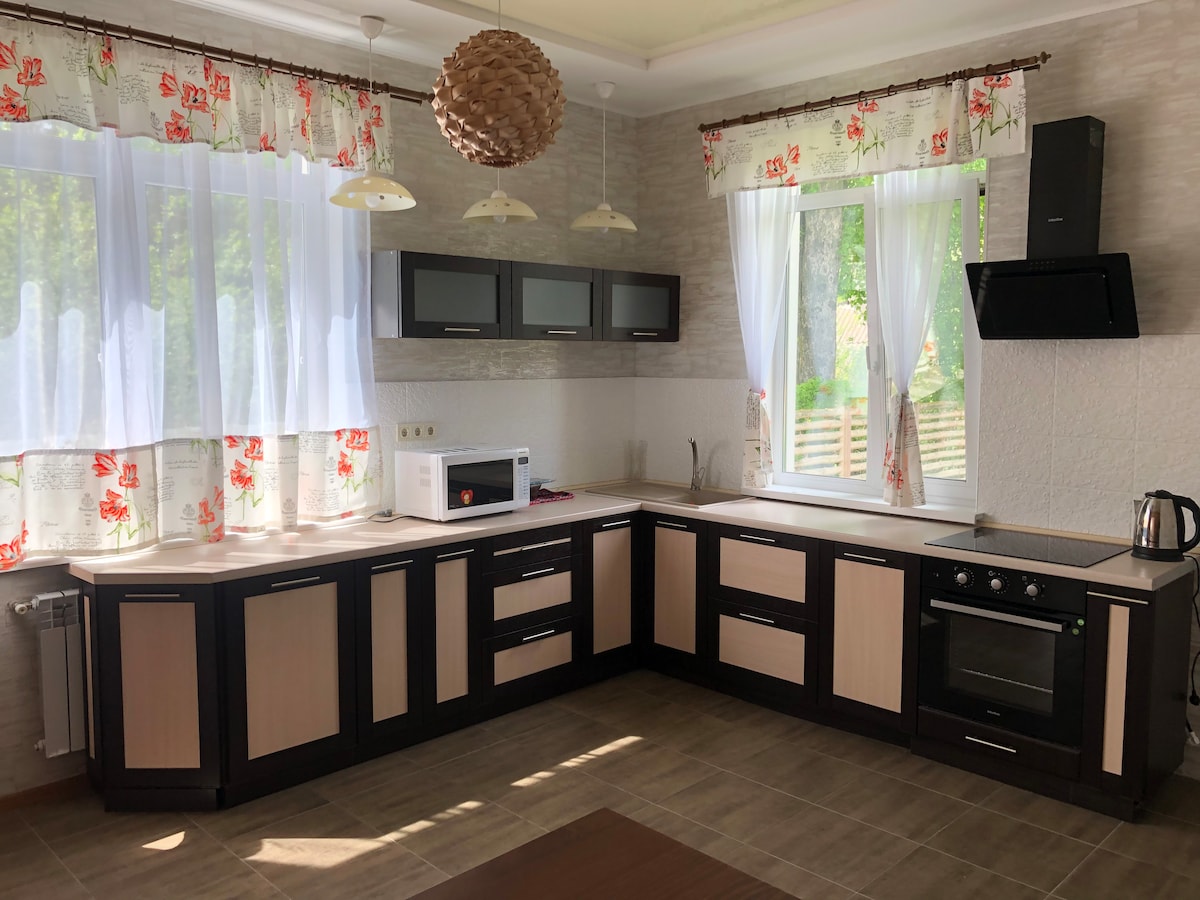 O casă ecologică din lemn se află la 40 de minute de mers cu mașina de Kiev, lângă lac, înconjurată de o pădure relicvă. Zona este închisă. Există o parcare gratuită. Oaspeții au posibilitatea de a folosi grătarul și foișorul. Pescuitul este disponibil la un cost suplimentar. Casa are o bucătărie complet utilată cu ustensile și electrocasnice (fierbător electric, cuptor cu microunde, aragaz, frigider)