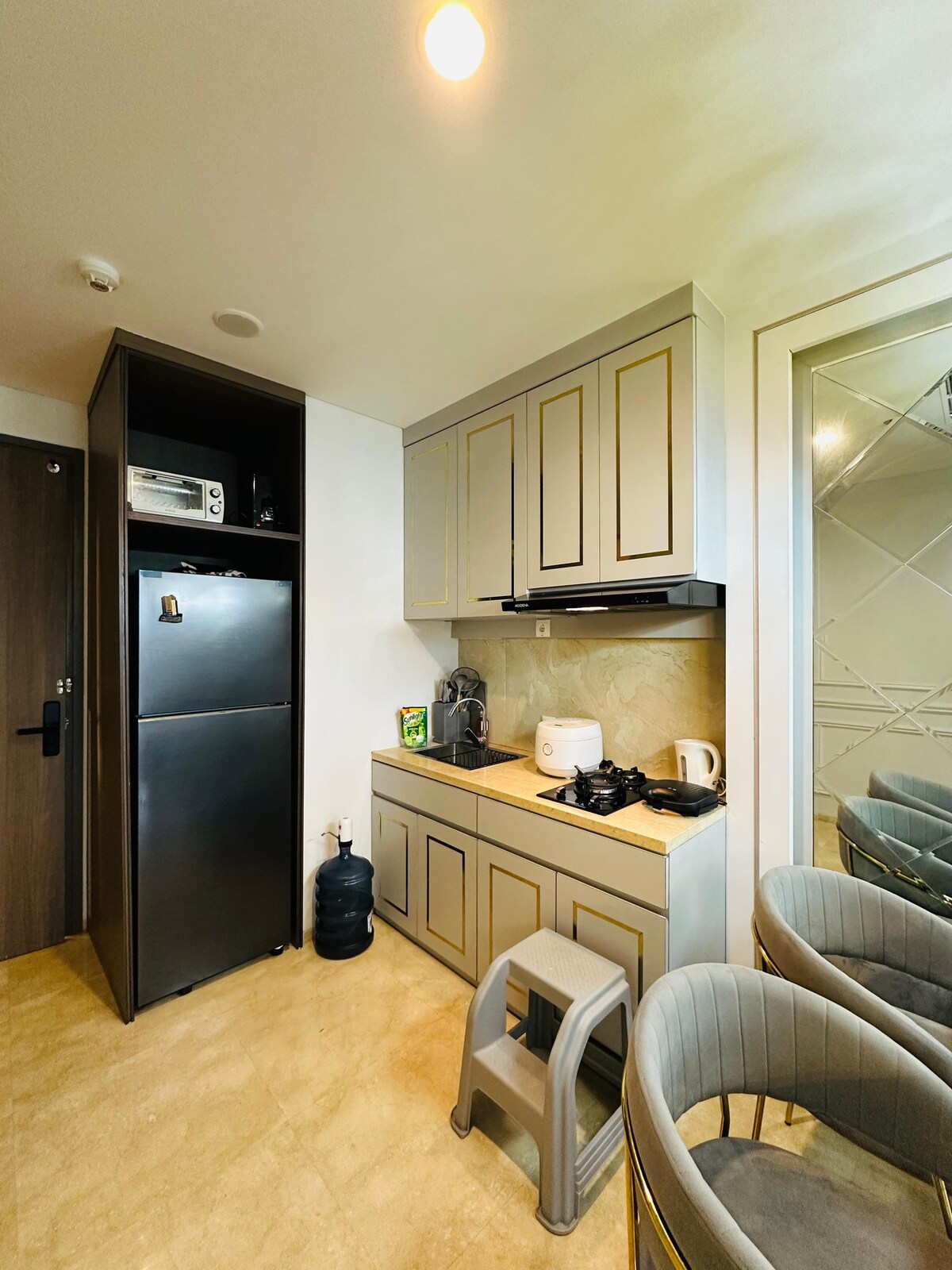 Tipe Suites 2 Bedroom Luas : 80 m² -Kulkas -mesin kopi -Dispenser -Mesin cuci -Peralatan dapur -Peralatan kebersihan -Wifi -Water heater -Balkon -TV -Setrika baju -Jemuran lipat -Sprei/bedcover -Listrik 3850 Watt Fasilitas 1. Kolam renang 2. Gym 3. Security 24Jam 4. Card access 5. Listrik & Air 7. Multi function room 8. Rooftop lantai 31 altitude *Tarif Promo September-oktober* Harian Rp1.5jt/malam Bulanan Rp25.jt/bulan 1 Tahun Rp200jt *Biaya maintenance ditanggung Pemilik Unit*