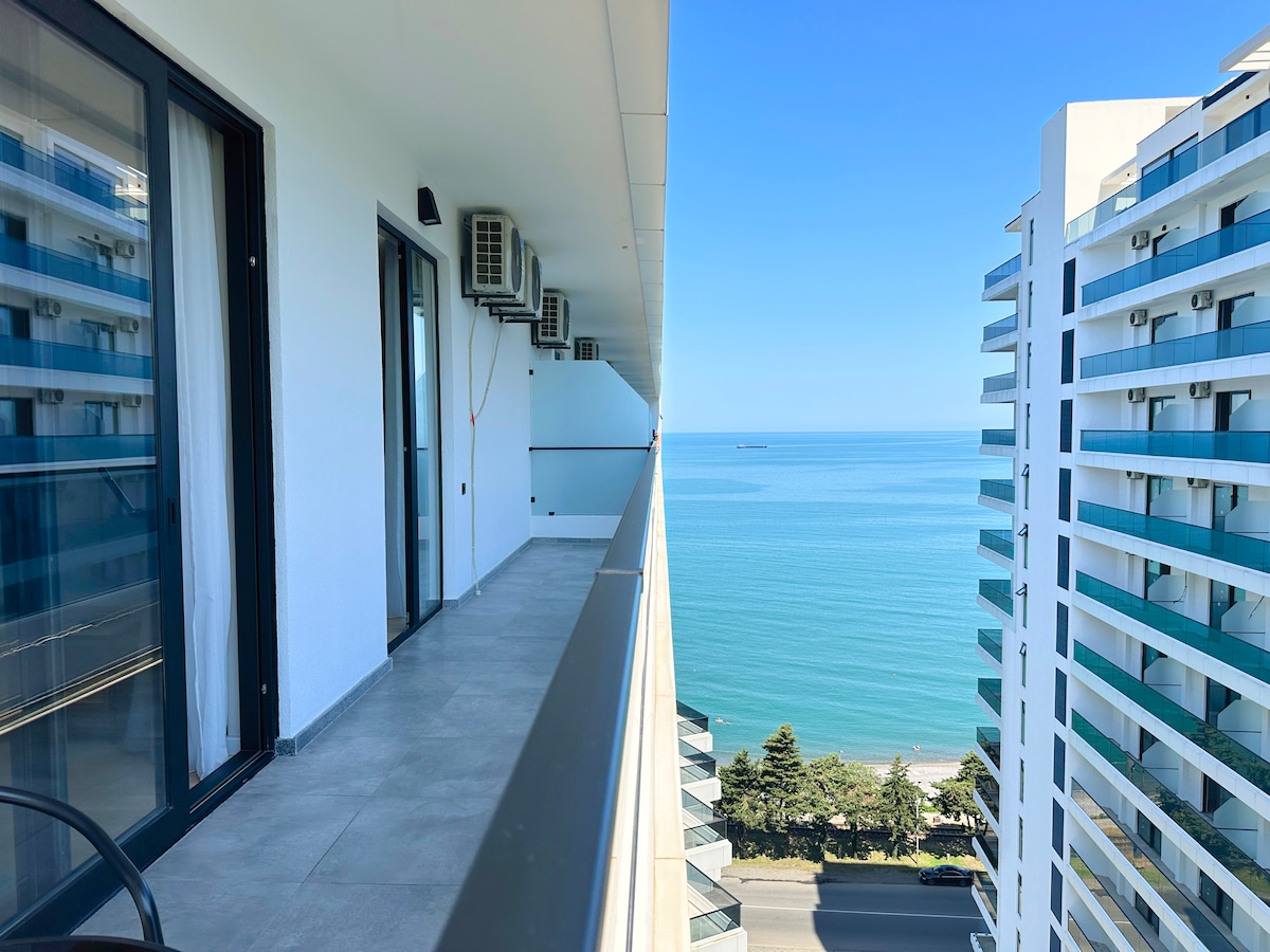 Un apartament panoramic (50 mp) la etajul 15 al complexului de apartamente Orbi Sea Towers, situat la 50 m de plajă. VEDERE ULUITOARE la mare de la două balcoane și ferestre PANORAMICE din podea până în tavan. Bucătărie complet utilată, toate aparatele, aer condiționat, Wi-Fi gratuit și TV.