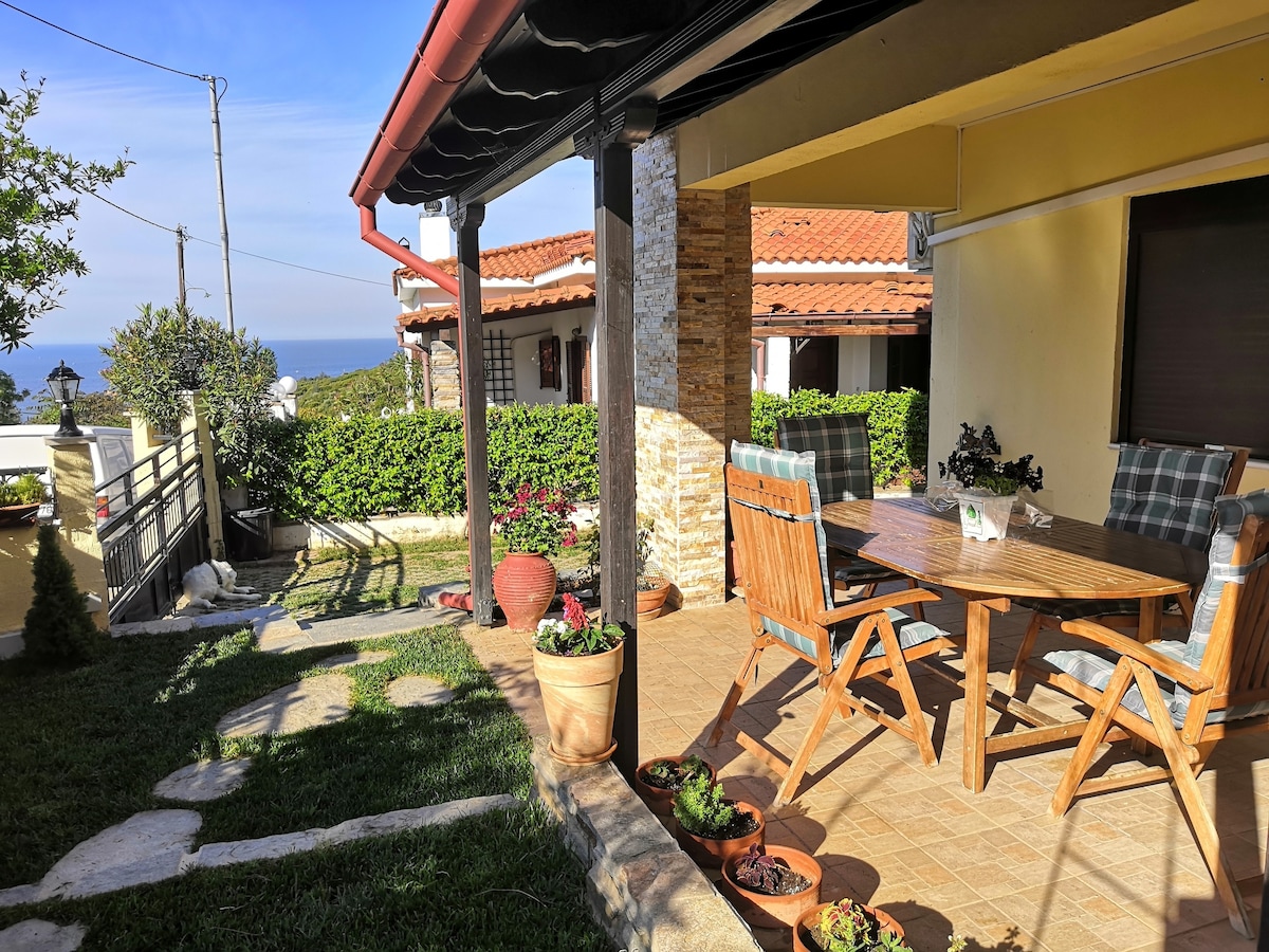Casă confortabilă la țară într-un loc liniștit (loc unic pentru vacanțe liniștite și private, departe de cluburi de noapte zgomotoase și baruri). Casa este situată în apropiere de faimoasa plajă Agia Paraskevi şi lângă plaja privată (20m pe jos) pentru vacanţe de vară unice. Plaja privată este plină de creaturi marine (pești etc.). Oferim experiență de pescuit cu barca noastră de pescuit sau explorare subacvatică. De asemenea, plaja privată este ideală pentru înot. Bucătărie complet echipată, televizor, Wi-Fi, a/c. (AMA) 00000275847