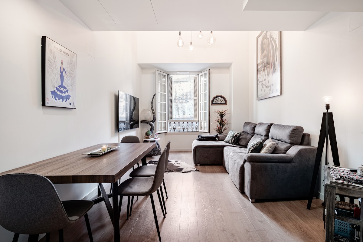 Spacious 30m2 studio with large south-facing window in the heart of Málaga. Short walk to cafes, restaurants, museums, port & beach. ▪ 5 minutes on foot to underground train station (€1.80/12 mins to airport) ▪ Located in trendy Soho, a vibrant area close to waterfront ▪ Close to excellent breakfast cafes & restaurants ▪ Top-quality bed (180x200cm) with pocket sprung mattress ▪ No cleaning fee