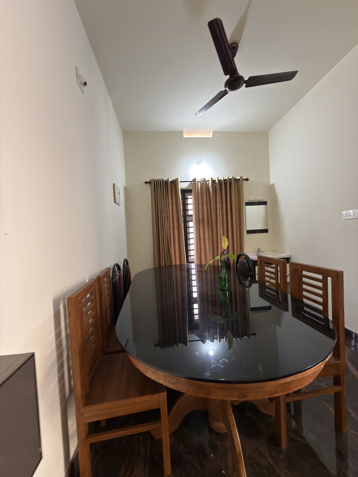 A peaceful haven in this family-friendly 2BHK apartment, attached bathrooms with separate guest and separate family living space. Nested in a safe and quiet neighborhood, closer to Chaliyar river, spacious, well-ventilated rooms with ample natural light. Enjoy a calm environment, ideal for relaxation and quality family time, conveniently located inside Nilambur Kovilakam and the amenities of this apartment ensures comfort, safety and tranquility stay.