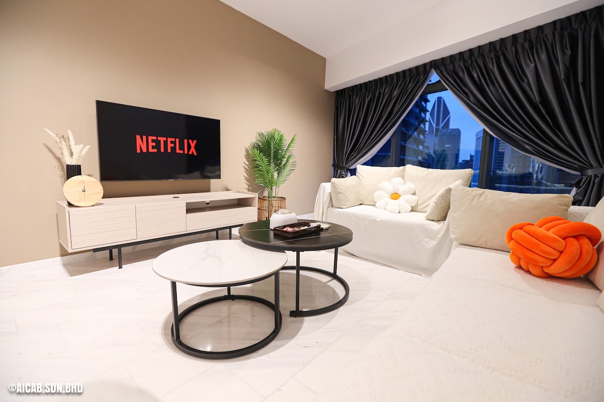 Our beautiful, chill, cozy homestay is located within the CBD and the Golden Triangle. Offers stunning views from the awarded infinity pool on level 51 and is surrounded by all the iconic towers in Malaysia, including the KLCC, KL Tower, Tun Razak Exchange, and Warisan Merdeka Tower. It is conveniently located 100m from the Conlay MRT station, 1km from Pavilion Mall, KLCC, TRX, and many other hot spots in KL. In addition, many options for meal delivery are available 24/7.