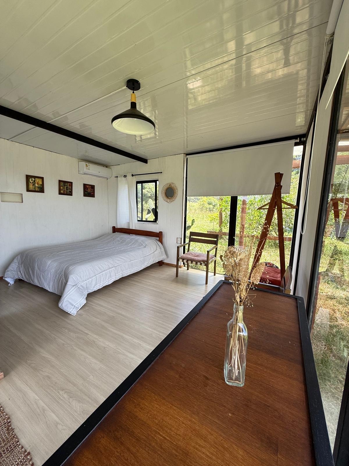 Bucură-te de liniștea și frumusețea Sierras de Minas în timp ce stai la această căsuță din Vergel de San Francisco, la doar câteva minute de orașul Minas. Cocoțată în mijlocul peisajului rural, vitraliile mari oferă o priveliște uluitoare asupra văii, înconjurată de dealuri, stânci și mâneci antice de piatră. Este confortabil și confortabil, cald iarna și răcoros vara, ceea ce vă permite să vă conectați cu natura.