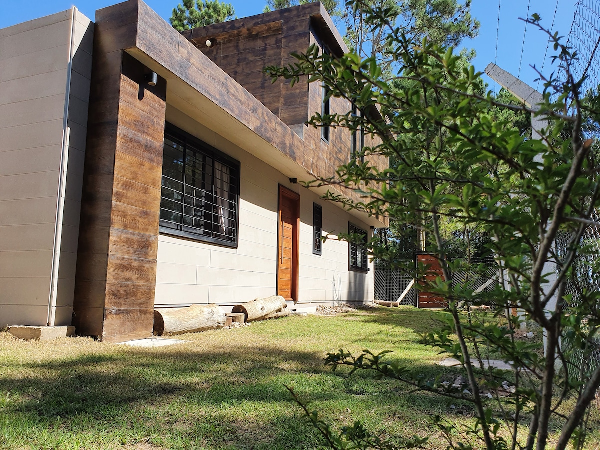 Cabană confortabilă în pădurea Punta Ballena. Ideal pentru a evada și a te odihni într-un mediu natural și foarte liniștit. La câțiva pași de Arboretum Lussich, ideal pentru drumeții, plimbări și savurarea unei cafele cu un delicios tort La Checa. La câteva minute de plaja Solanas, Tío Tom, Las Grutas, Chihuahua. Avem șezlonguri și umbrelă cu protecție UV. Iarna te vom aștepta cu Fueguito Engido. Casa este complet utilată pentru a-i face să se simtă confortabil ca acasă.