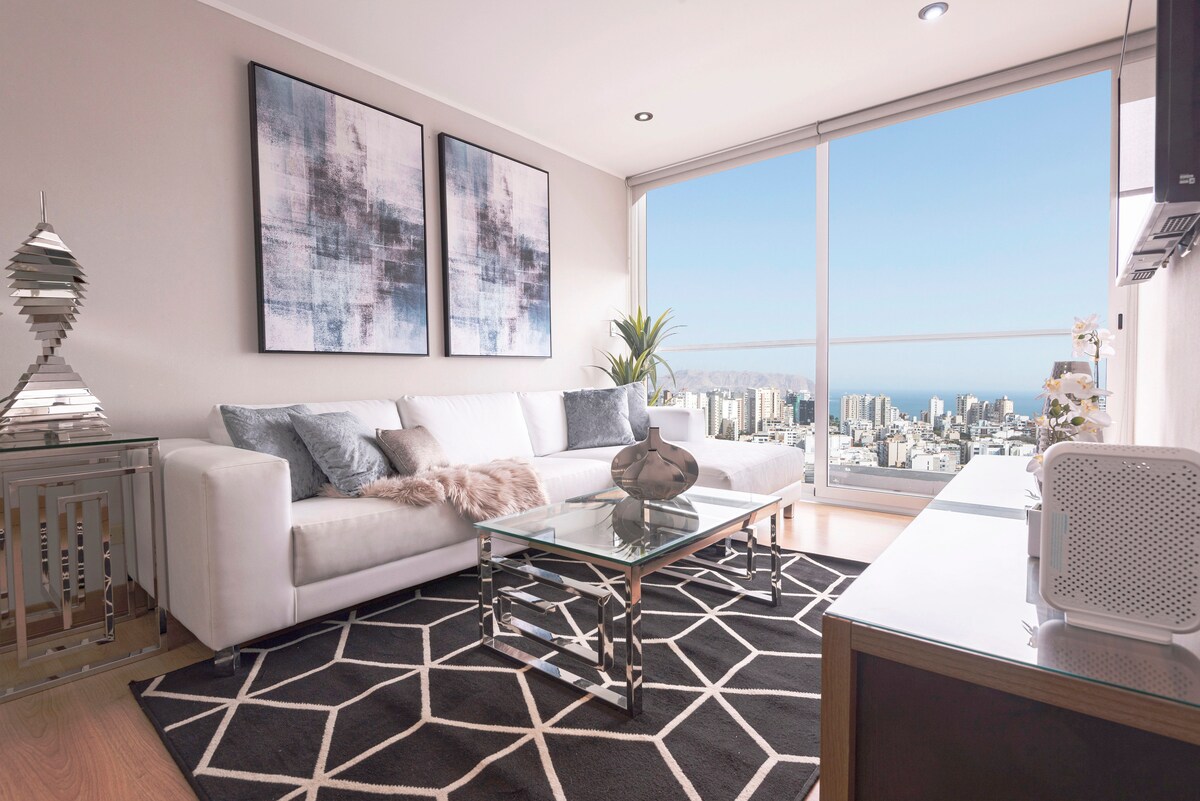 Trăiește Lima de la etajul 20, cu priveliști uimitoare! Pat matrimonial 🛏️ KING TV 📺 de 65" 🛋️ Canapea confortabilă 🍳 Bucătărie complet utilată. 🏊 Piscină, 🔥 grătar și 🍸 lounge bar (în funcție de disponibilitate) 🚗 Parcare pentru 8 USD/noapte (în funcție de disponibilitate) 🧳 Depozitează bagajele înainte de check-in sau după check-out 📍 Locație excelentă între Miraflores, San Isidro și Surquillo 🌟 Cu un scor de 4,96 și statutul de Super-gazdă, îți ofer o ședere confortabilă și sigură. 📅 Rezervă acum și bucură-te de Lima de sus, cu stil și confort!