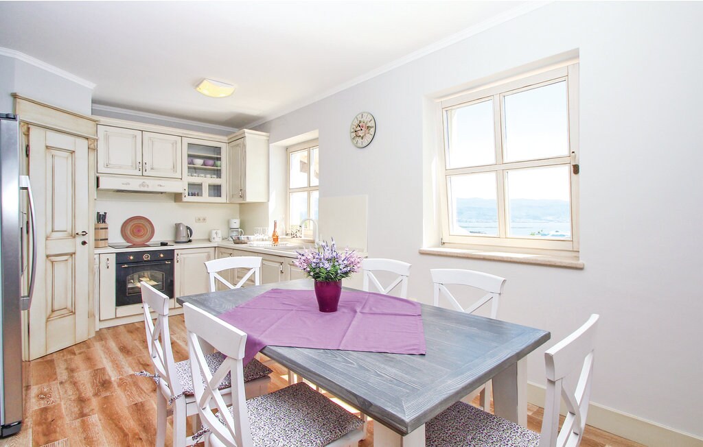Apartamentul face parte dintr-un Villa Sunset Sea nou construit, cu o piscină mare în spate. Acesta este situat chiar în rândul din față al mării, iar balconul oferă o vedere frumoasă la mare, cu un apus de soare magic. Vila se află în micul sat de pescari Njivice. Este ideal pentru o familie care caută o vacanță plăcută.