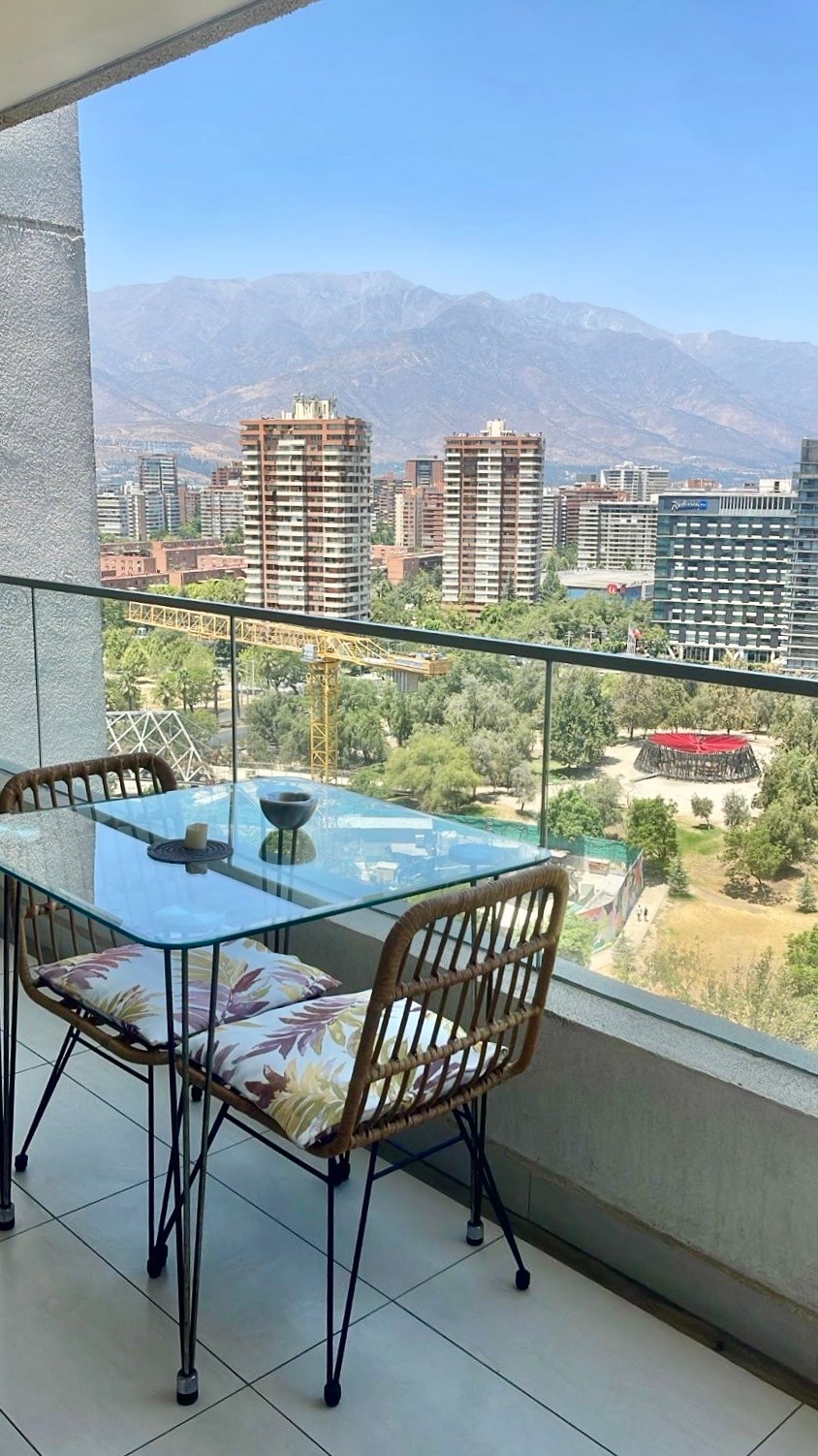 Apartament nou cu vedere la Parque Araucano și Cordillera. La câțiva pași de mall-ul Parque Arauco, restaurante, baruri, supermarketuri, bănci și rețeaua de metrou. 1 dormitor și 1 baie. Canapea/pat sau saltea. Garderobă, TV cu servicii de streaming. Bucătărie echipată. Birou. Parcare (contra cost). Clădire securizată. Spălătorie, piscină temperată, saună, piscină în aer liber, sală de gimnastică, quincho para asados și sală de evenimente. Minimarket la poartă și room service pentru comenzi de mâncare!
