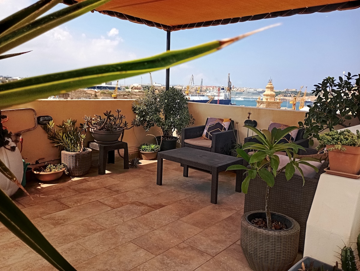 Această suită se află pe cea mai exclusivistă și pitorească stradă din Malta, Bastionul Saint Barbara. Cu fața la Grand Harbour, cu vedere completă la mare din living, precum și spre dormitorul de la etaj (acesta este un duplex cu două etaje, dormitor deasupra, living și chicinetă mică la parter), situat exact între Lower Barakka și Grădinile Barakka Superioară, cu frumosul loc al căptușelilor de croazieră și al iahturilor de lux care intră și ies chiar în fața ta în Marele Port.