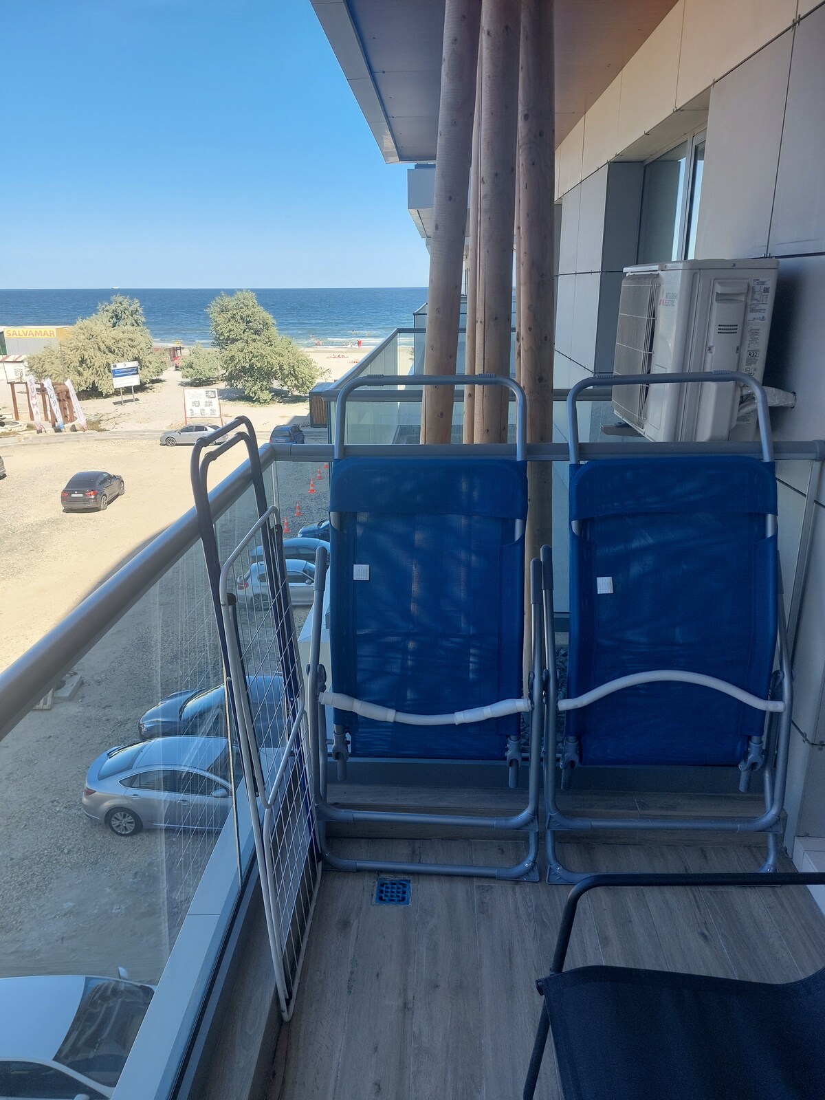Cazează-te într-o locuință de lux, prima linie la mare Trăiește o experiență unică exact ca în afară la noi în Mamaia . - Studio deosebit, panorama superba, 55 mp Restaurante in incinta hotelului , posibilitatea de a servi masa pe terasa .Terasa foarte generoasa, de 10 m Dotări:ușă inteligentă vs cu cod fără cheie , uscator de par, espressor cu capsule gratuite pat KingSize 180 bucătărie complet utilată și mobilată ,tv ultra HD smart, wifi,climatizare inteligentă ,prosoape și lenjerie nouă