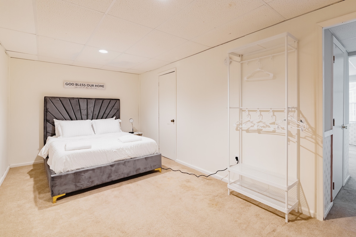 Subsol privat spațios la doar câteva minute de Jiffy Lube Live, la 30 de mile de D.C. și la o oră de Shenandoah. În apropiere, bucură-te de cinematografe și restaurante mari. Subsolul are o intrare privată, pat confortabil, canapele, o baie privată, o chicinetă cu cuptor cu microunde și frigider (fără chiuvetă de bucătărie, aragaz sau cuptor), plus o zonă de jocuri/exerciții fizice. Indiferent dacă te relaxezi după un concert, te uiți la televizor, joci jocuri sau te antrenezi, acest spațiu oferă confort și comoditate pentru o ședere relaxantă.