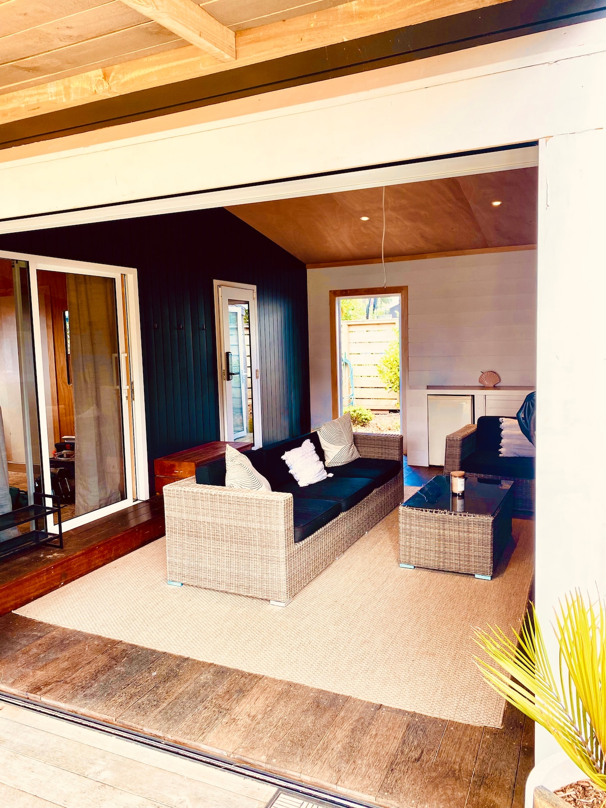 Whare Iti este un refugiu de tip boutique în Mangawhai Heads, ideal pentru sejururi de vară pline de soare și escapade confortabile de iarnă. Cu două dormitoare super-king, zonă de living cu șemineu și ecran cu Chromecast, baie de sine stătătoare, grătar și terase scăldate în soare, este locul perfect pentru relaxare. Bucură-te de o bucătărie complet utilată, o grădină luxuriantă împrejmuită și acces ușor la plaje, cafenele, piețe, teren de golf, plimbări în estuar — toate la doar o scurtă plimbare.