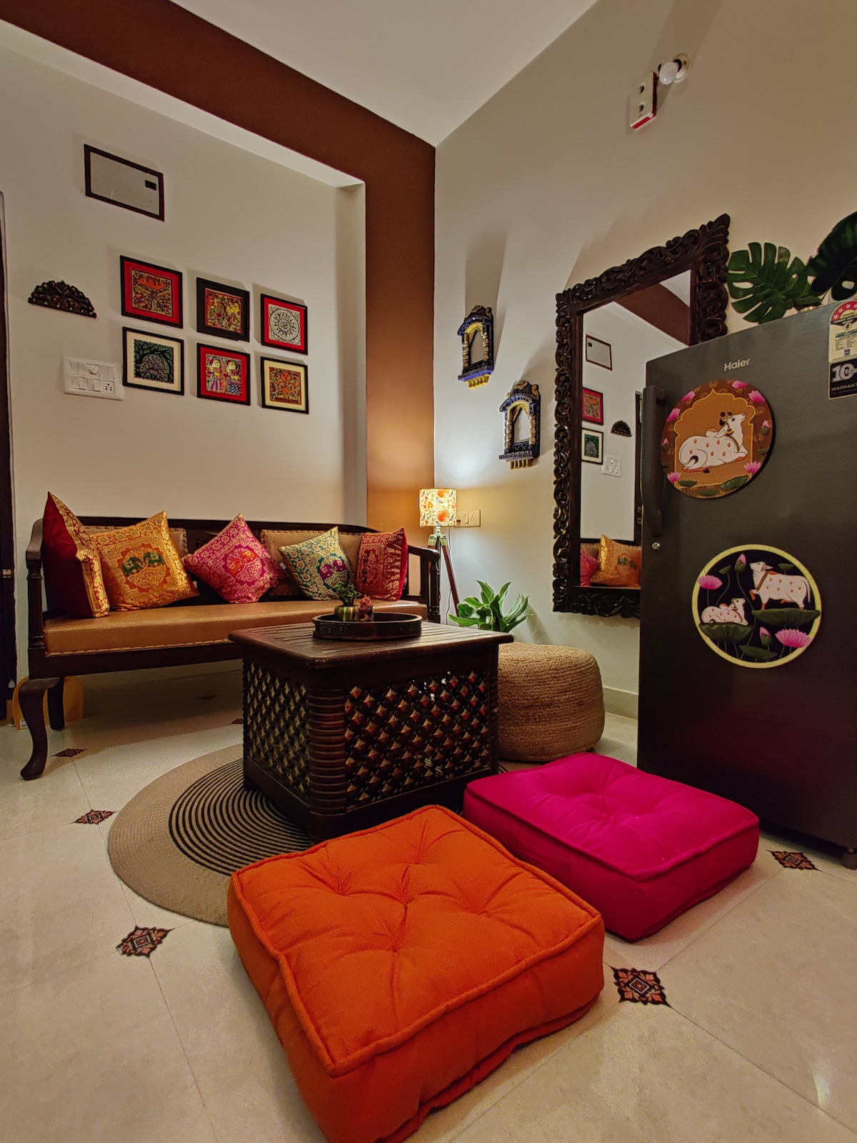 Welcome to your ideal home away from home. Our apartment is on the first floor of the villa without a lift, exclusively for the families only. Unmarried couples and Bachelors are restricted. Our apartment is spacious. A/C in both the bedrooms, with attached bathrooms. Featuring two spacious bedrooms, our retreat ensures a peaceful night's sleep . The master bedroom is with a king-size bed, while the second bedroom is with a queen-size bed, and two additional floor mattresses.