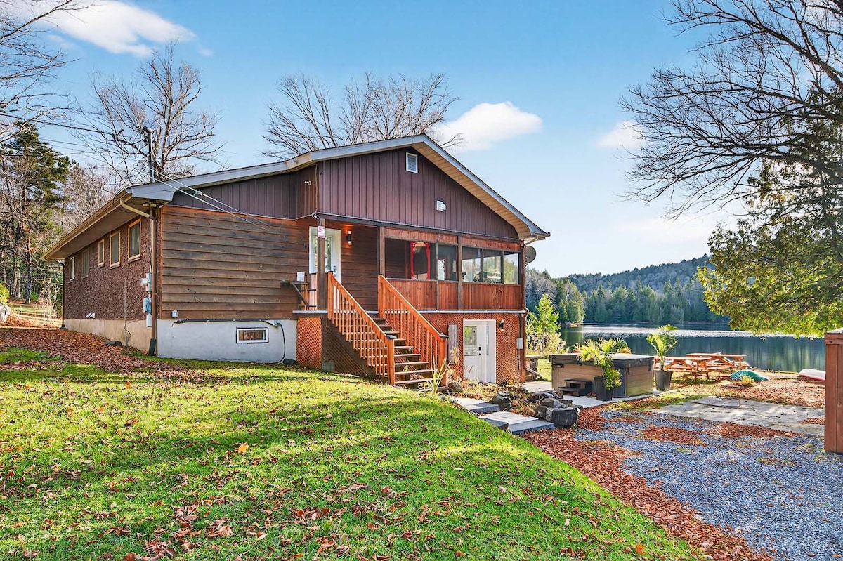 Un refugiu natural perfect în inima Laurentianului. Descoperă această locuință unică din bușteni canadiană, construită de compania locală de prestigiu Harkins. Lac liniștit cu apă limpede, direct în fața acestei pietre ascunse. Șemineu ♦ interior din lemn lângă living confortabil și TV inteligent ♦ Două dormitoare spațioase cu pat matrimonial și matrimonial Acces la lacul natural♦ privat ♦ Balcon cu grătar. Groapă de foc Intimitate♦ pură, fără vecini aproape ♦ Birou și Wi-Fi