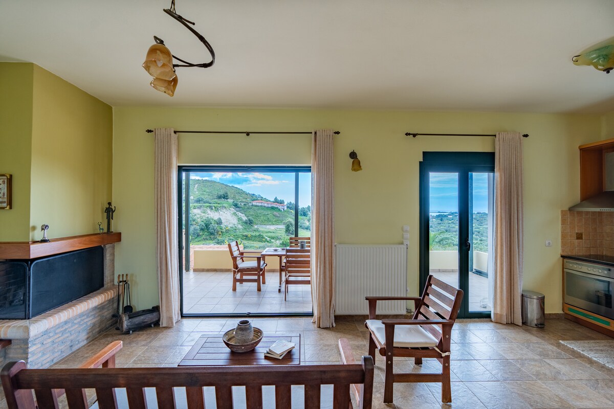 Noul apartament luminos! Acesta este situat în Loggos, la 10 minute de mers pe jos de centrul orașului Lixouri și la 15 minute de una dintre cele mai renumite plaje numite Lepeda. Acesta este proiectat cu o căsătorie armonioasă de lux, confort și stil. Oferă o mare varietate de dotări și oferă o experiență de viață excelentă pentru cea mai bună vacanță la cel mai bun raport calitate/preț. Facilități de înaltă calitate la fel ca un hotel de 5*. Este sigur că oaspeții se vor bucura de priveliștea incredibilă de la balconul casei.